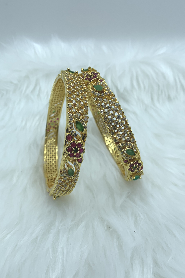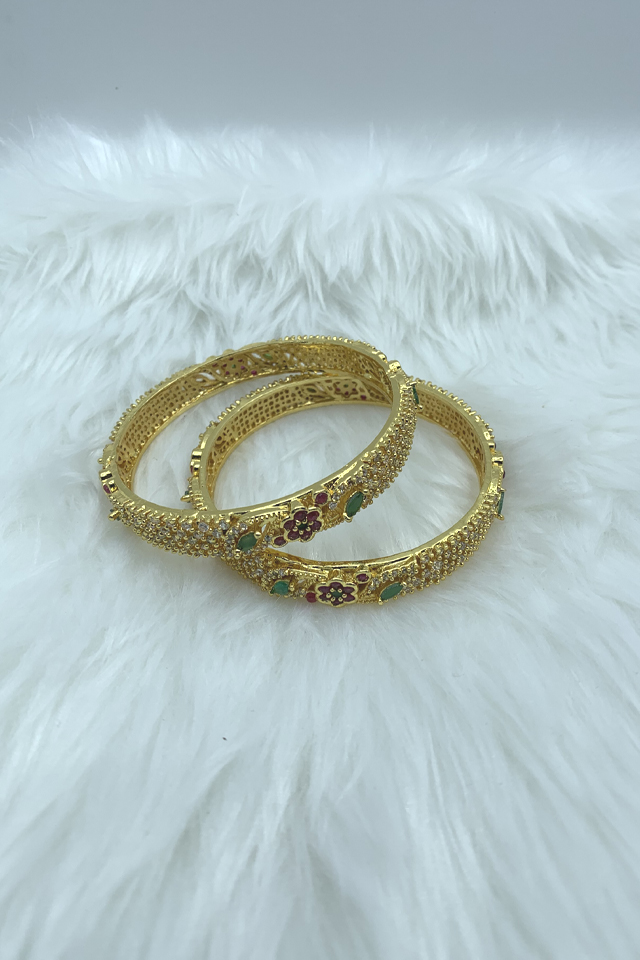 Gold Pleated Cz Multicolour bangles comes with set of 2.