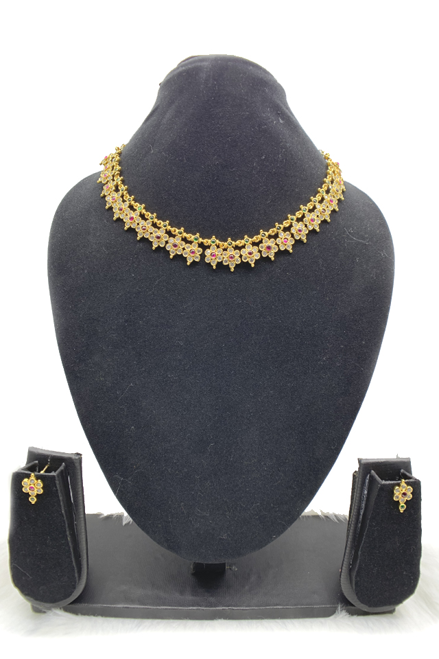 All, Necklaces, NecklacesGold Pleated Flower Kundan Necklace