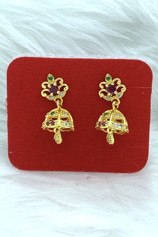 Small size jhumka style gold coated earrings studded with cz’s.Can be preffered as Daily wear purpose.